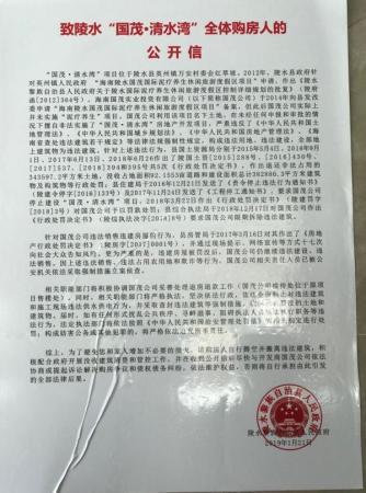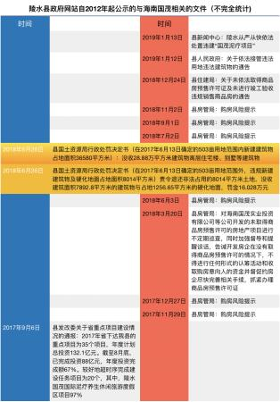 澎湃新闻注意到,在陵水县政府网站上,从2017年开始,至少发布了8次针对国茂等项目的购房风险提示。