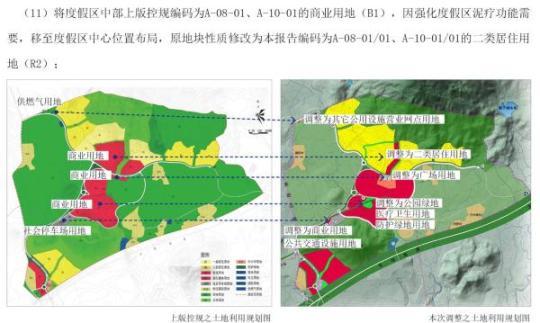 《海南陵水·国际泥疗养生休闲旅游度假区控制性详细规划》修改必要性论证报告截图。调整为二类居住用地包含了部分别墅区域和酒店区域。