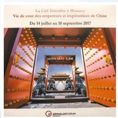 摩纳哥2017年发行小型张,邮票上展现了故宫的红色大门和狮子雕塑。影像中国