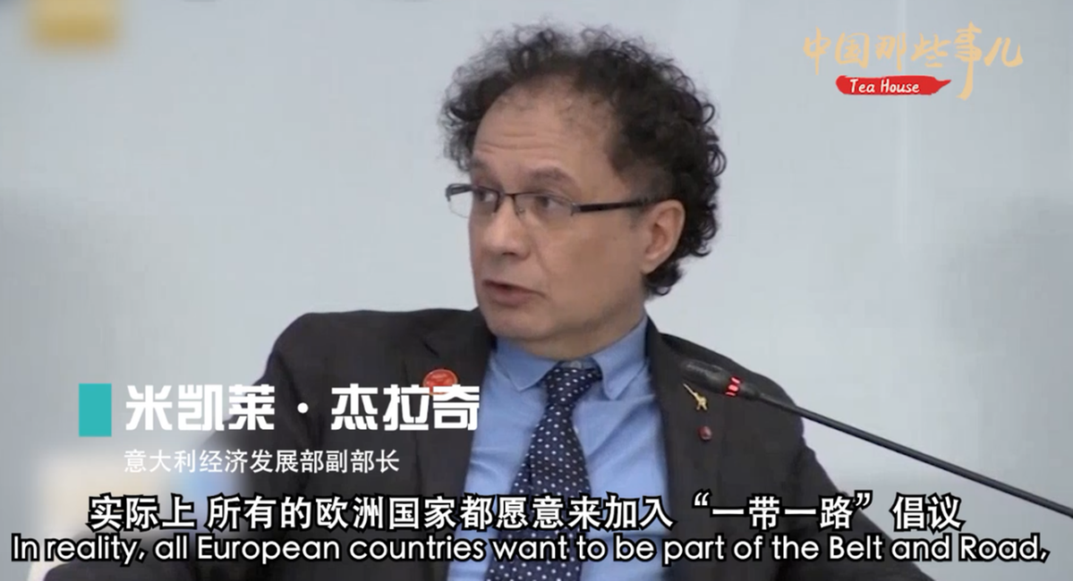 在“世界经济展望2019:确定性与不确定性”分论坛上,意大利经济发展部副部长米凯莱· 杰拉奇谈到刚刚与中国签署的政府间关于共同推进“一带一路”建设的谅解备忘录,他表示,过去10到15年,比起其他的欧洲国家来说,意大利和中国的商业关系是滞后的,意大利想把之前丢失的时间“补”回来。作为第一个加入“一带一路”倡议的七国集团国家,米凯莱·杰拉奇告诉大家,实际上,所有的欧洲国家都愿意加入“一带一路”倡议中来,他们想抓住这个机遇发展自己。