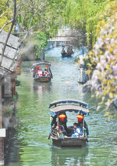 4月6日,游客在浙江南浔古镇游览。新华社记者 黄宗治摄
