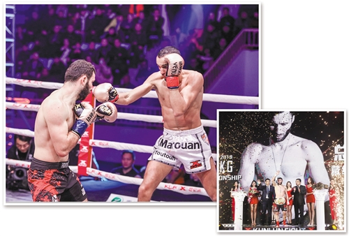 左图 2月24日,在上海崇明举行的昆仑决2018-2019年度诸神之战总决赛上,戴维特·奇利亚(左)与马罗恩·杜托交锋。右图 戴维特·奇利亚荣获2018-2019年度诸神之战总冠军。