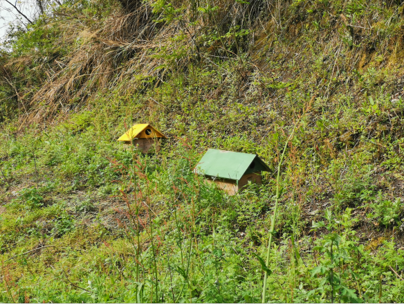 △华溪村山坡上的蜂箱。(央视记者张宇拍摄)