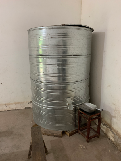 △马培清家的储粮桶装满了稻谷。(央视记者马立飞拍摄)