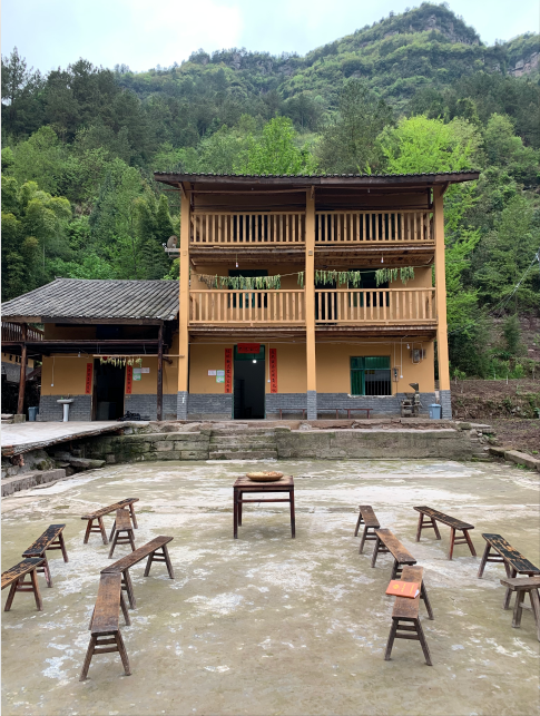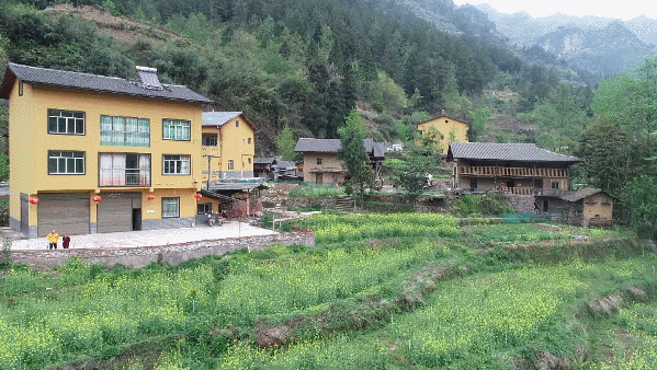△中益乡的房屋都被刷成了姜黄色,因为姜黄色是蜂蜜的颜色。当地主要出产黄连、辣椒和蜂蜜。乡亲们说,“吃得黄连苦,换来蜂蜜甜”。(央视记者刘雨 于滨拍摄)