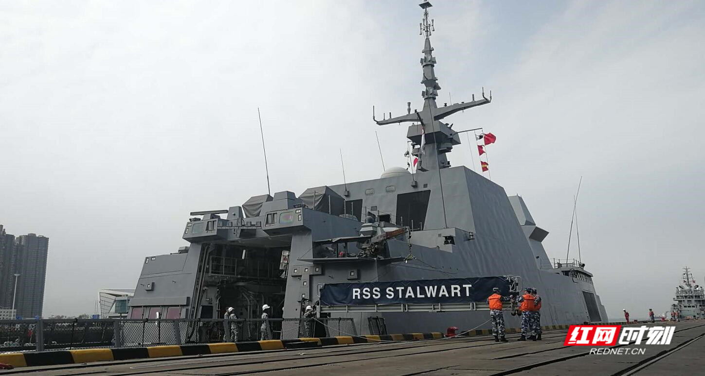 红网时刻4月19日青岛讯(记者 芦静 张兴莎) 4月19日,新加坡海军“坚强”号护卫舰缓缓停靠青岛大港码头。这是参加中国人民解放军海军成立70周年多国海军活动到访的第一艘外国海军舰艇。