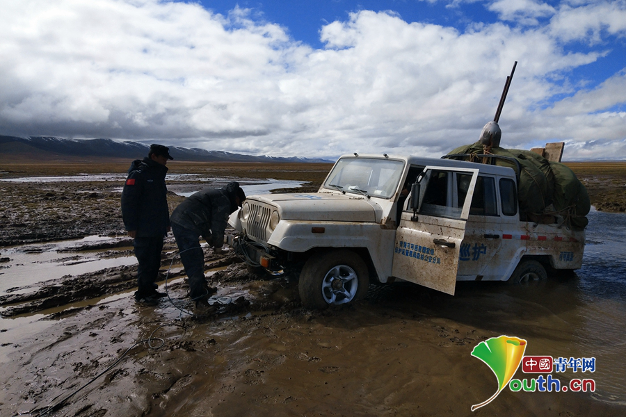 行走在可可西里,车是“刚需”。但一旦陷到沼泽地里,就变成了“人扛车”。 “雨水多的时候每天都要陷车、挖车、又陷车、又挖车……有时候连车的四个轮子都看不见。”