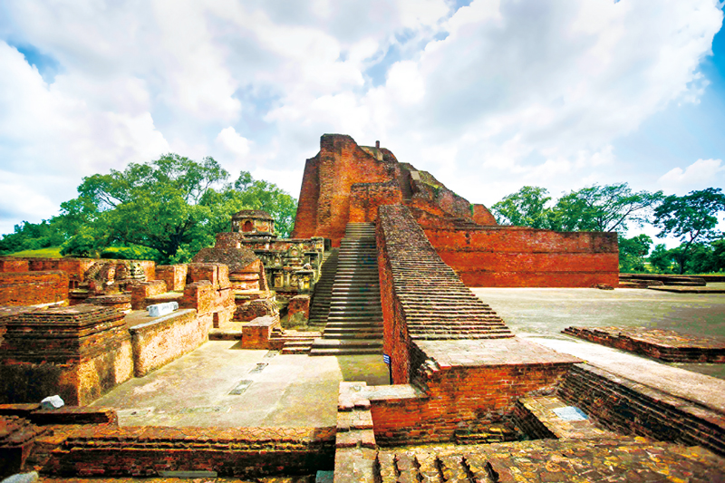 玄奘,唐代著名高僧,中外文化交流杰出使者。他历经艰辛到印度取经,回国后主要从事佛经翻译,译经数量占到唐代译经总卷数的一半以上,所著的《大唐西域记》一书,为研究中古时期中亚、南亚诸国的历史、地理、宗教、文化等提供了重要资料。上图为山西省稷山县青龙寺“玄奘取经图”壁画(局部)(新华社记者 马毅敏/摄)。下图为根据《大唐西域记》确认的印度那烂陀寺遗址(新华社记者 郑焕松/摄)。