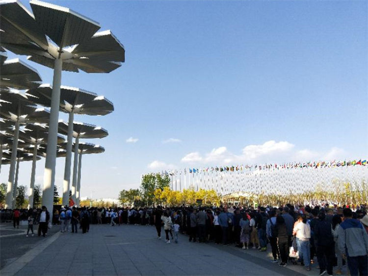 国际馆外已排起长队。新华社记者 魏梦佳 摄