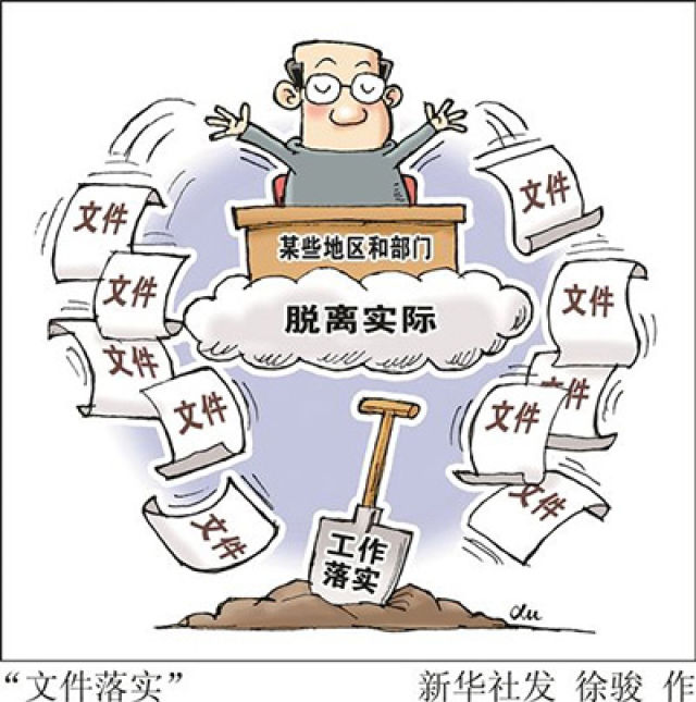 喊口号、装样子,喜欢做表面文章。表态多、调门高,行动少、落实差。