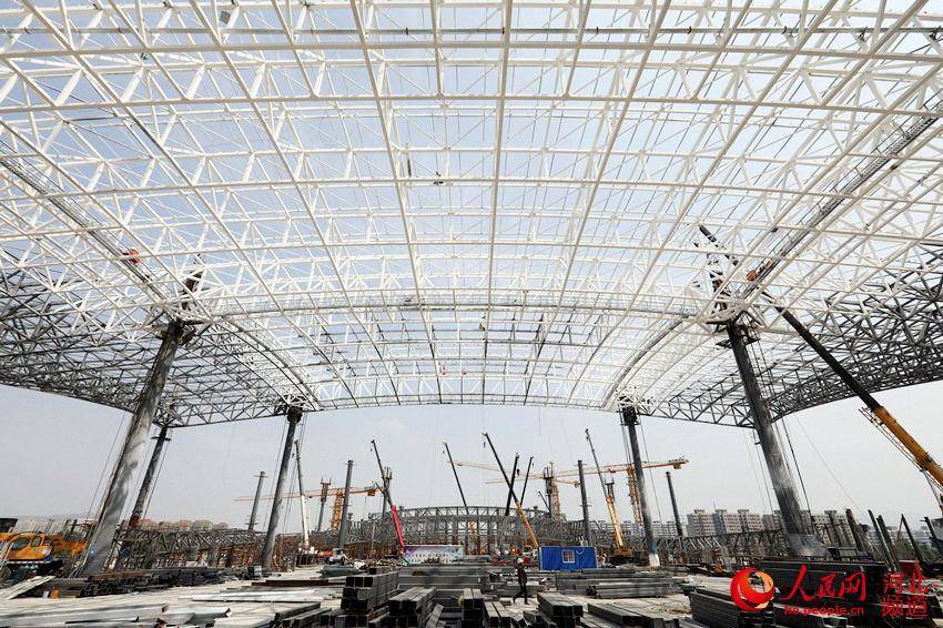 高耸的塔吊旋转、挖掘穿梭的机械声轰鸣、钢结构上的焊花飞舞……近日,北京冬奥会崇礼赛场交通配套工程——京张高铁张家口站一派热火朝天的施工景象,建设者们正忙碌地进行着钢结构网架焊接、地下室二次结构施工、1-2站台钢筋板安装、五站台清水混凝土浇筑等工程施工。