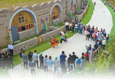 西吉县吉强镇龙王坝村脆弱的生态环境逐步修复。图为游客在观看社火表演。新华社记者 郭绪雷摄