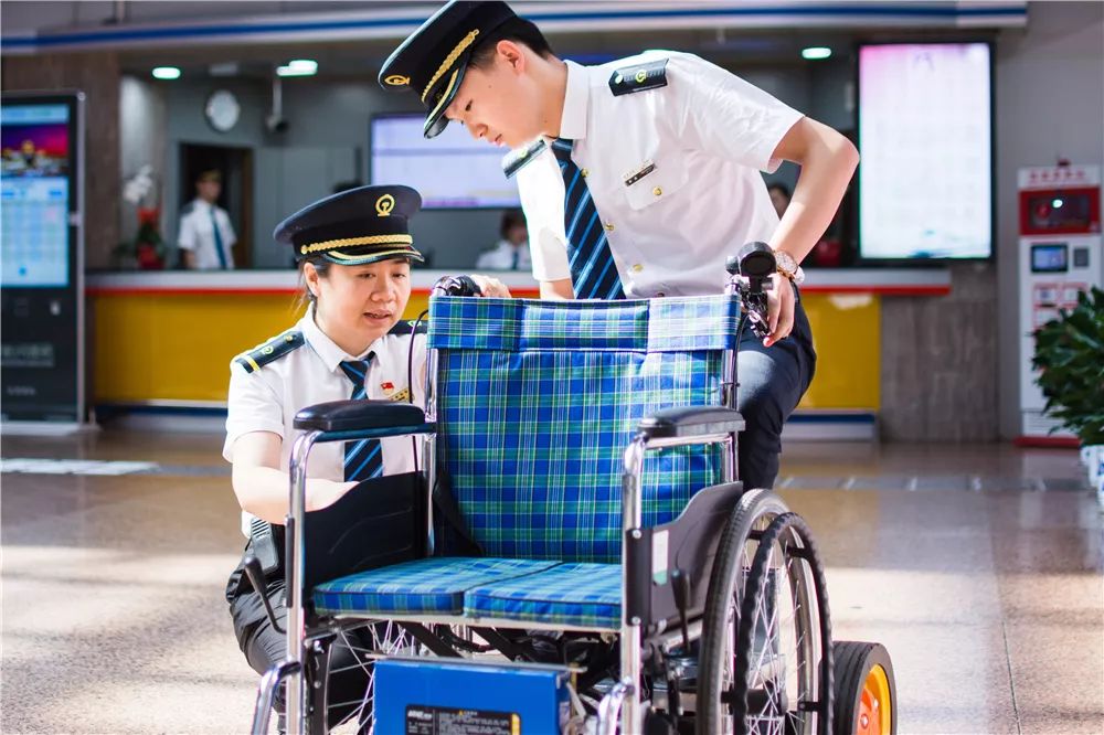 旅客坐在轮椅上、客运人员坐在后侧座位上控制电动轮椅行走,非常方便。电动轮椅投入使用后,每日每台电动轮椅接送重点旅客达40余人次,既减轻了客运员工作强度,又提高了接送重点旅客效率。