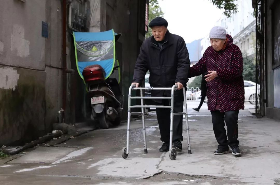 老爷爷张富清走得很慢很慢,95岁的他双手拄着助步架,一瘸一拐……老奶奶孙玉兰静静地走在他身边,看着前方的路,余光瞥着老伴的步伐。
