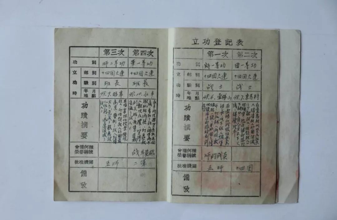 在张富清的另一件“宝贝”——立功登记表上,还记录了他在其他战斗中的英勇——