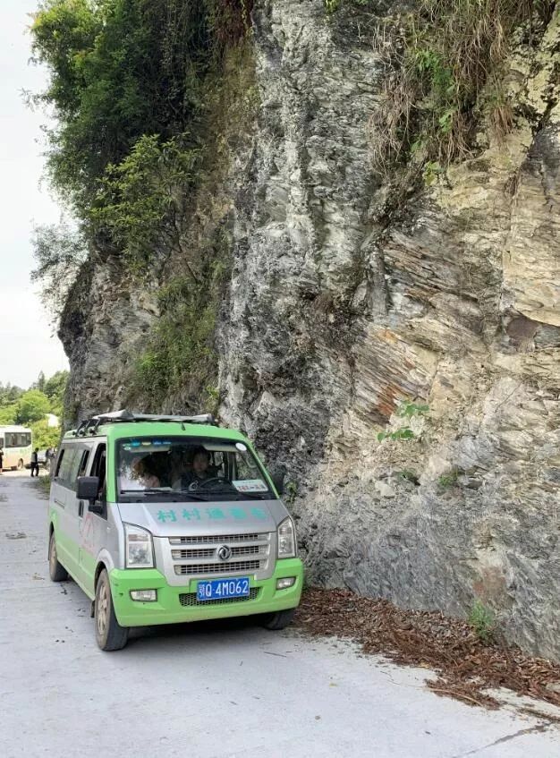 △“村村通”的小巴士贴着峭壁行驶。孙伟帅 摄