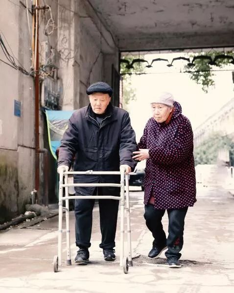 张富清坚持锻炼身体,虽然腿脚不便,在老伴搀扶下每天坚持出门。(湖北日报全媒记者魏铼 通讯员朱勇 摄)