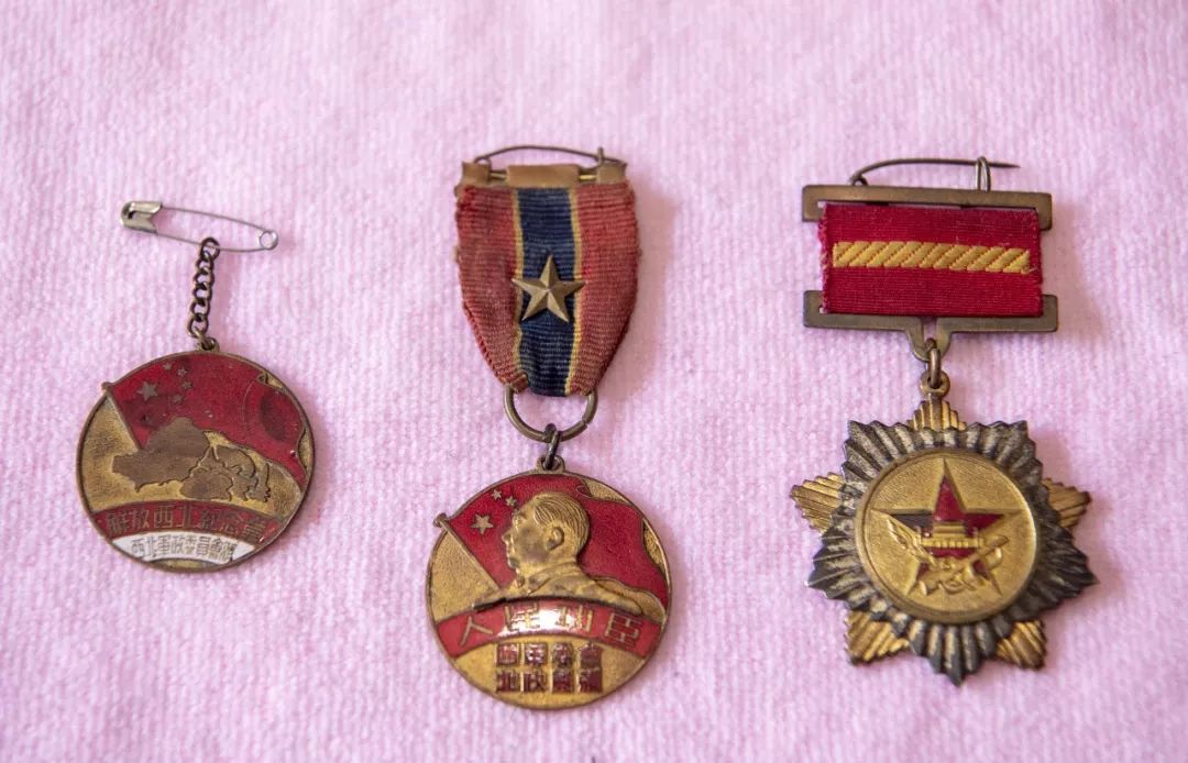 张富清获得的军功章(湖北日报全媒记者魏铼 通讯员朱勇 摄)