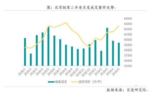 北京链家二手房月度成交量价走势。来源:贝壳研究院