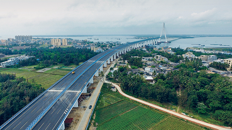 加快补齐基础设施、公共服务等领域短板弱项,将进一步释放不平衡发展所蕴藏的巨大势能,促进形成强大国内市场。图为2019年3月18日,中国首座跨越地震活动断层的跨海大桥——海南海文大桥建成通车。 新华社记者 郭程/摄