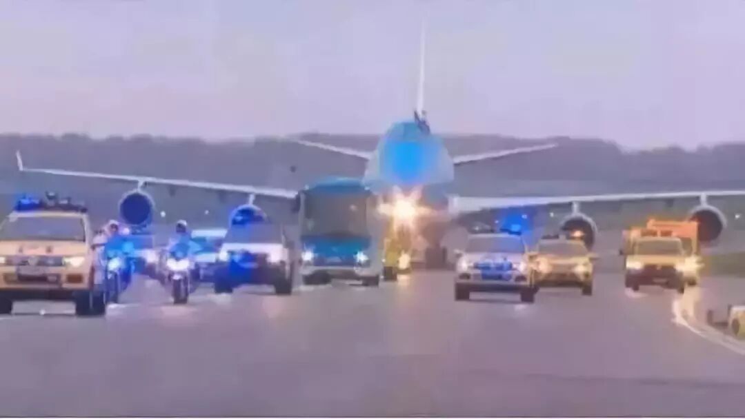 当地时间2017年4月12日,大熊猫“武雯”和“星雅”乘坐专机抵达荷兰。