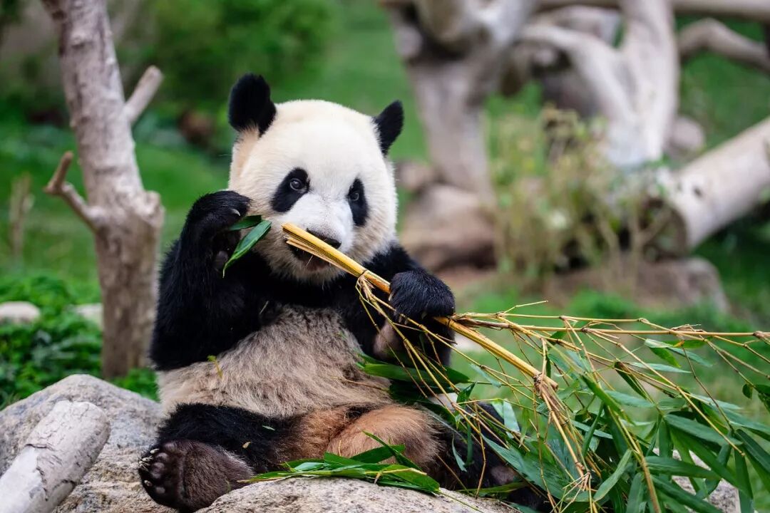 大熊猫“丁丁”(4月26日摄)。大熊猫“如意”“丁丁”已乘专机抵达俄罗斯莫斯科动物园,开启为期15年的中俄大熊猫保护研究合作项目。新华社记者 萧永航 摄