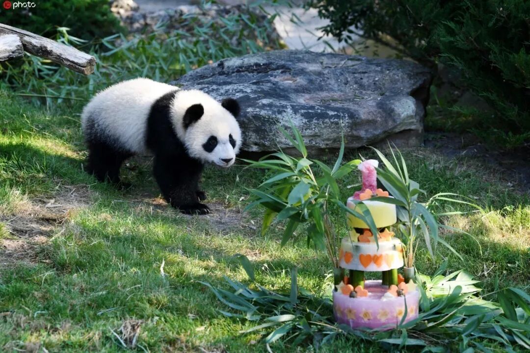 当地时间2018年8月4日,法国博瓦勒野生动物园,在法国出生的第一只熊猫宝宝“圆梦”迎来1岁生日。