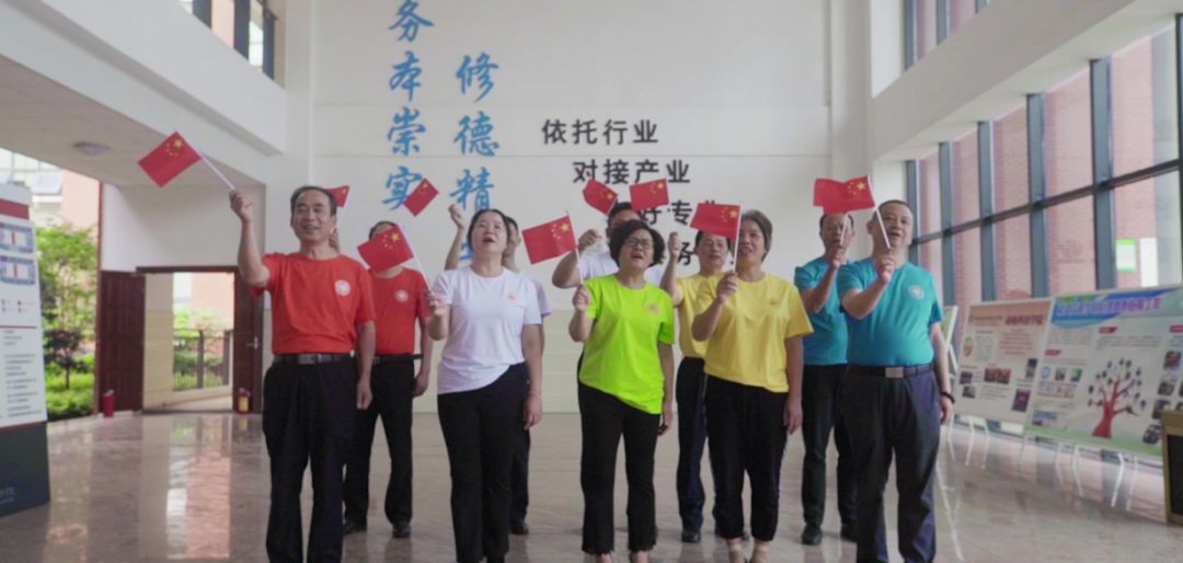 生机学子们跟随悠扬的旋律挥舞着国旗