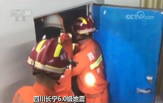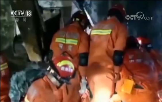 四川长宁:三人被困废墟 消防紧急搜救