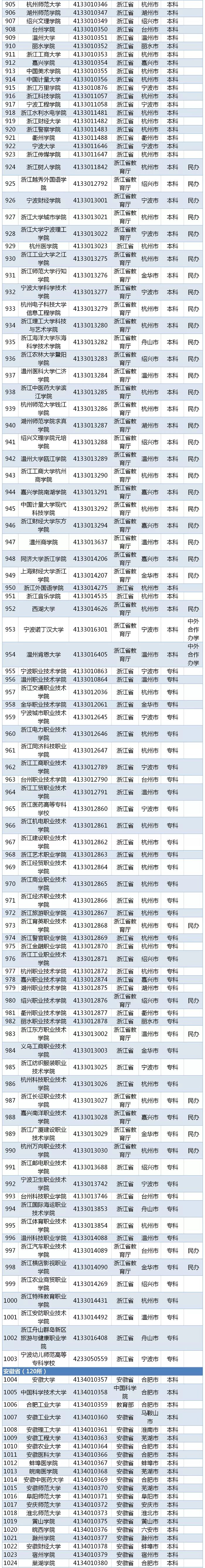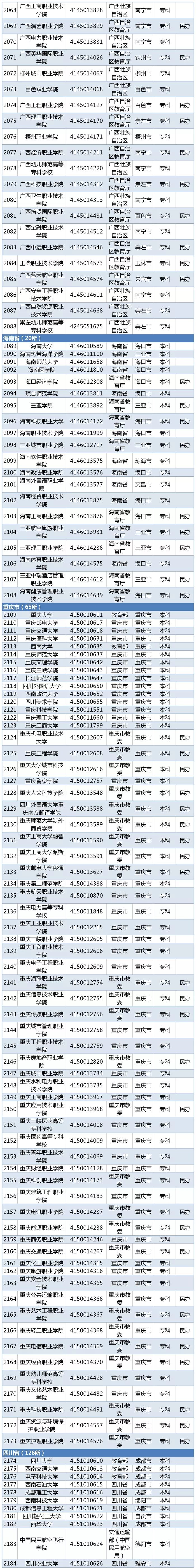 再过一周左右,2019全国高考的分数将陆续公布。17日,教育部发布2019年全国高等学校名单。截至2019年6月15日,全国高等学校共计2956所,其中:普通高等学校2688所(含独立学院257所),成人高等学校268所。