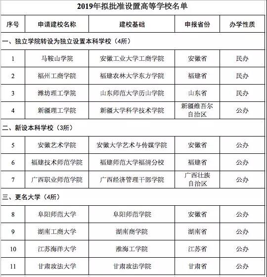 11所由省级人民政府申报设置的高等学校获得通过,公示后,教育部正式发函同意了!