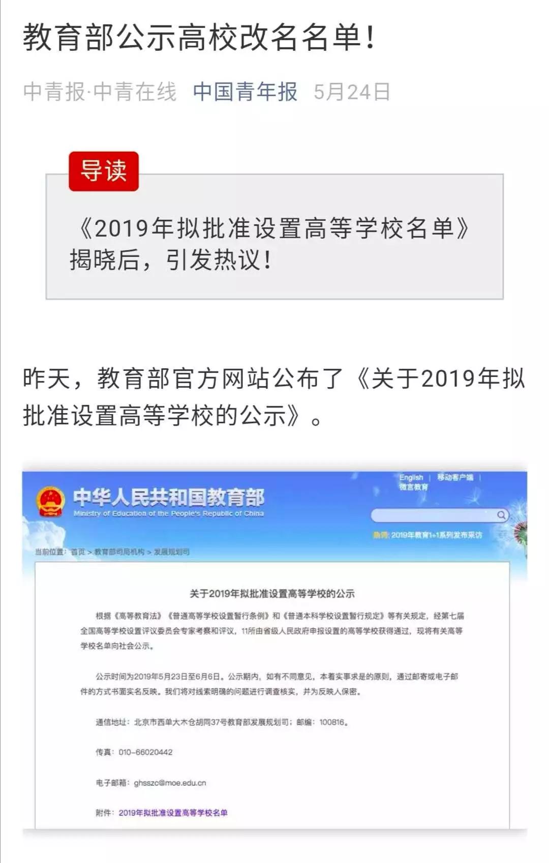名单中包含,“独立学院转设为独立设置本科学校”4所,“新设本科学校”3所,“更名大学”4所↓↓↓