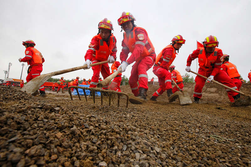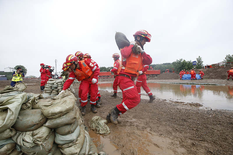人民网北京6月20日电 针对当前防汛抗洪严峻形势,为全面做好防大汛、抗大洪、抢大险、救大灾各项准备,6月20日,应急管理部、江西省人民政府在长江九江东升堤段举行2019年长江中下游抗洪抢险实战演练,中国安能建设集团有限公司500余名抢险队员参加演练。