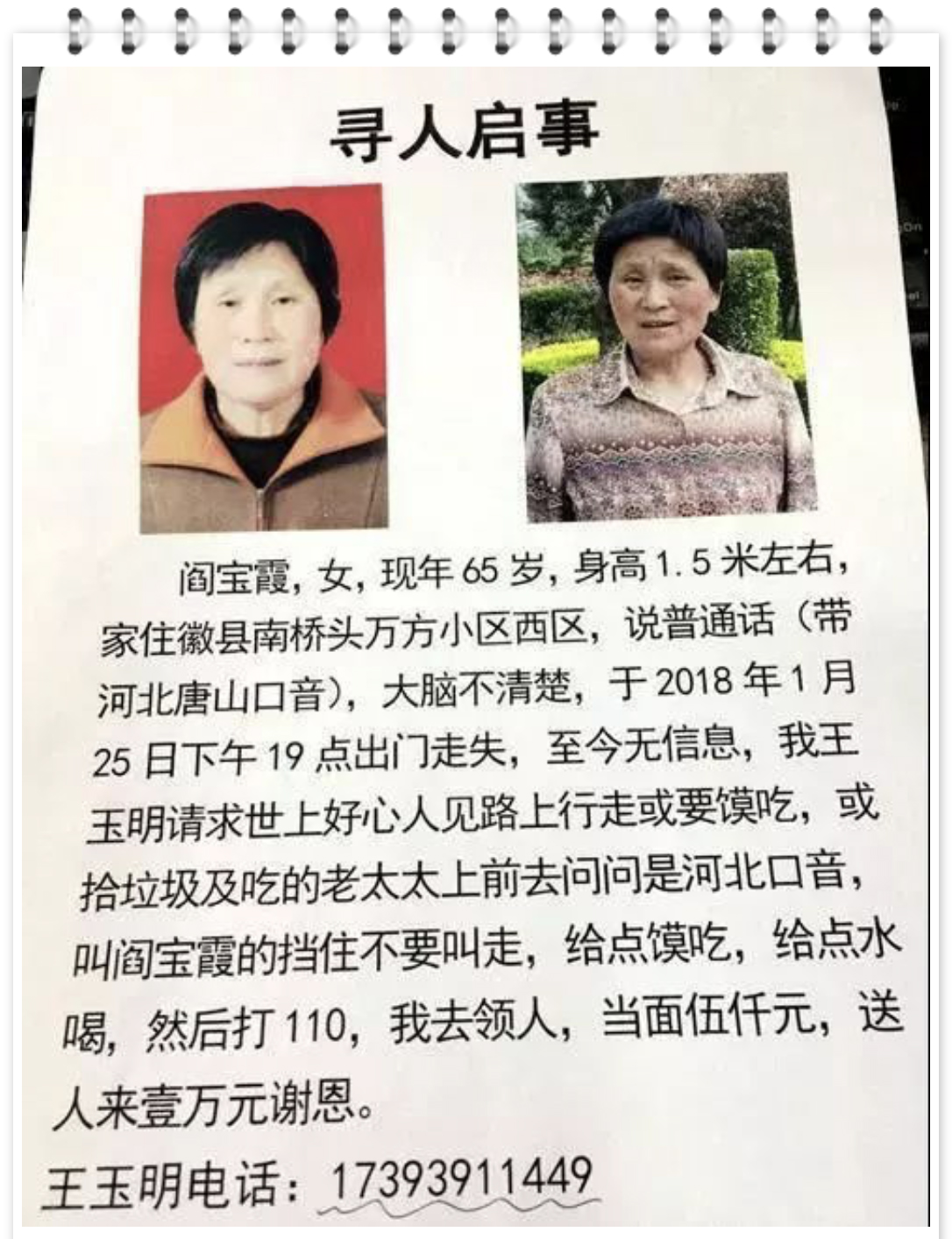 央视新闻现联合各新闻媒体在微博、微信、客户端等平台发布【接力寻人!】启事,征集阎宝霞老人线索。如有任何发现,欢迎直接给我们留言,你也可以发邮件至:ysxwkehuduan@cctv.com