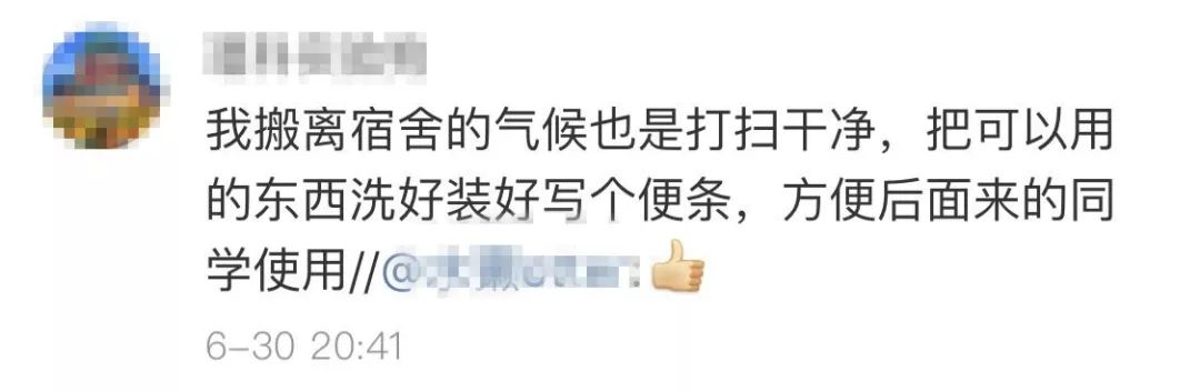 有人说,这里没有匆忙收拾的凌乱,没有着急离去的慌张,没有孤独离校的冷清,这不大不小的寝室带给宿舍楼管理阿姨的不仅仅是惊讶,更是引人深思的感动,因为这里有大学四年的珍贵记忆,有共同成长的幸福时光,有心怀他人的感恩之情,有分享美好的优秀品格。