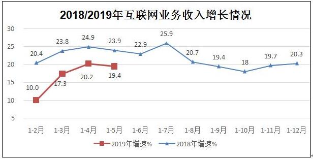 互联网业务收入保持两位数增长。1-5月,我国规模以上互联网和相关服务企业(简称互联网企业)完成业务收入4282亿元,同比增长19.4%,增速比去年同期回落4.5个百分点,但比一季度加快2个百分点。