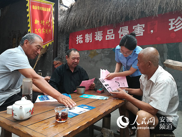 6月26日,临涣镇司法干警李婉春在临涣镇城隍庙茶楼做禁毒知识宣传。