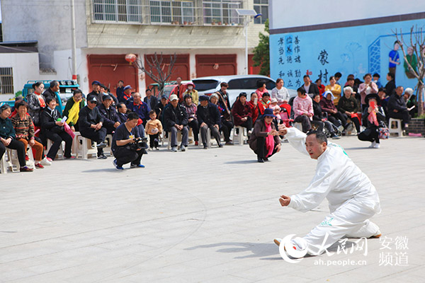 4月14日上午,濉溪县蒙村民间艺人在文化艺术进乡村活动中做表演示范。