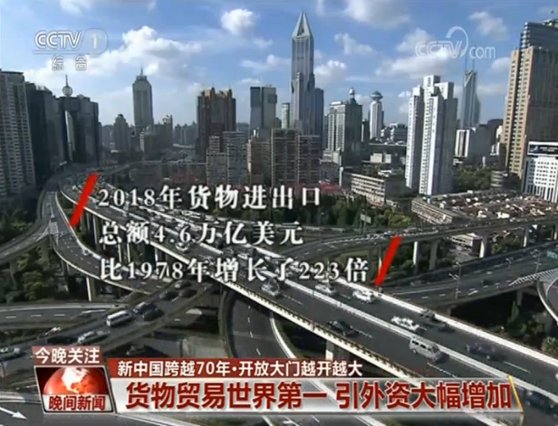 而上海只是我国改革开放的一个缩影。从封闭半封闭,到全方位对外开放,我国国际合作和经贸往来发展迅速。2018年,货物进出口总额4.6万亿美元,比1978年增长了223倍,连续两年居世界首位;2018年,我国实际使用非金融类外商直接投资1350亿美元,比1983年增长146倍,连续两年成为全球第二大外资流入国;党的十八大以来,全面落实准入前国民待遇加负面清单管理制度,引进外商直接投资领域不断拓展。