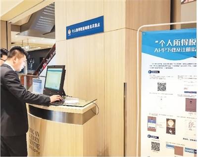 今年1月3日,上海市民正在静安嘉里中心的个税采集点内办理信息采集和扫码下载“个人所得税”APP。王 冈摄(人民图片)