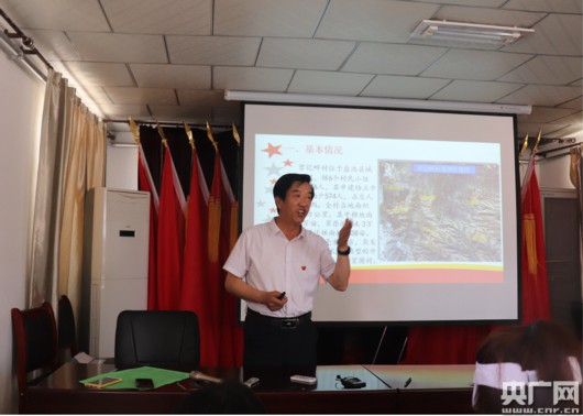 曾记畔村村支书朱玉国介绍脱贫情况(央广网记者 母晨静 摄)
