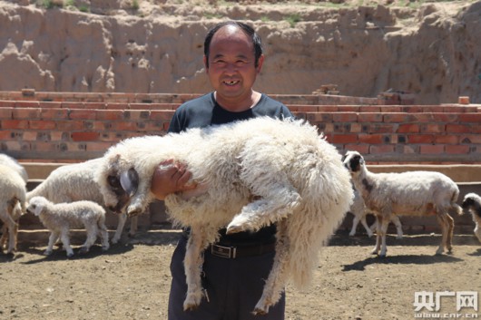 鲁永胜与自家滩羊的合影(央广网记者 母晨静 摄)