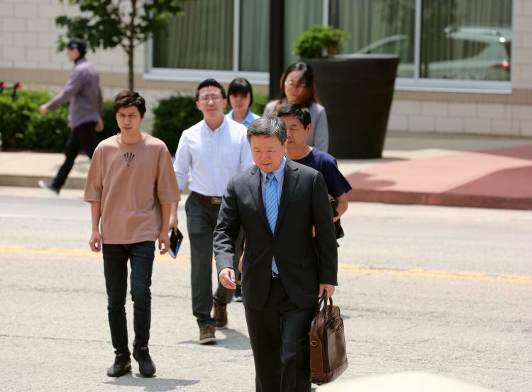 7月8日,在美国伊利诺伊州皮奥里亚,华人律师王志东和章莹颖的家人抵达联邦法院。新华社记者汪平摄