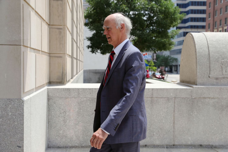 7月8日,在美国伊利诺伊州皮奥里亚,罪犯克里斯滕森的辩护律师罗伯特·塔克抵达联邦法院。新华社记者汪平摄