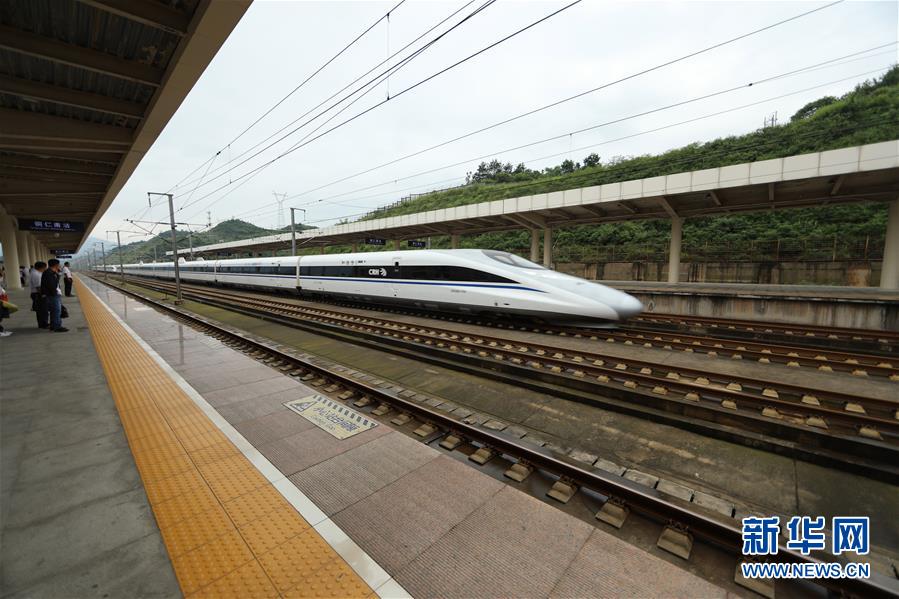 7月9日,一列动车组列车驶入贵州铜仁南站。 新华社 图