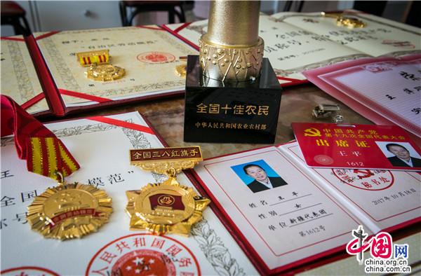王平当选十九大党代表,荣获三八红旗手,全国十佳农民等奖项。中国网记者 伦晓璇 摄