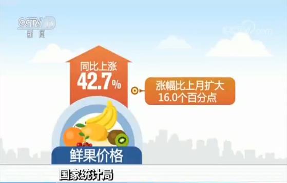 在食品中,由于去年同期价格较低以及气候等因素的影响,鲜果价格涨幅较大,同比上涨42.7%,涨幅比上月扩大16.0个百分点。猪肉价格同比上涨21.1%,涨幅也比上月扩大了2.9个百分点。此前,上涨较快的鲜菜价格在6月份涨幅有所回落。