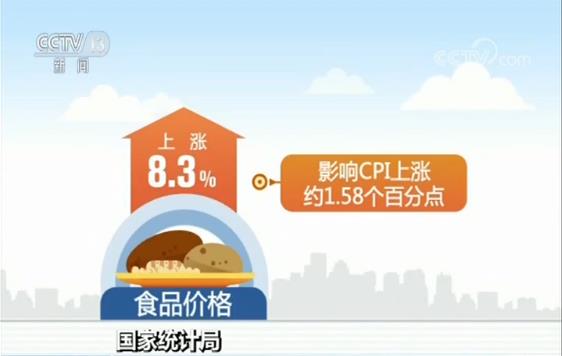 从同比看,6月份,CPI 上涨2.7%,其中,食品价格上涨8.3%,影响CPI上涨约1.58个百分点;非食品价格上涨1.4%,影响CPI上涨约1.10个百分点。