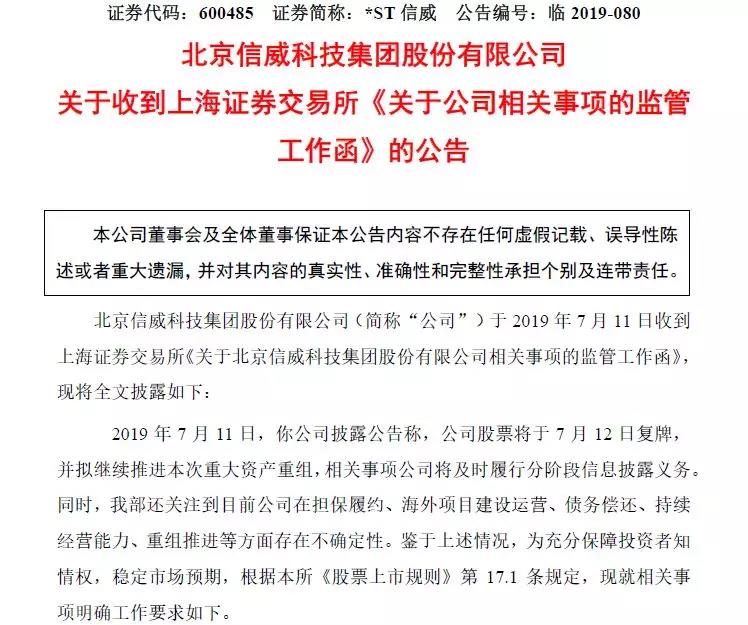 在复牌之前,上交所也下发了监管函,要求*ST信威回答几大问题: