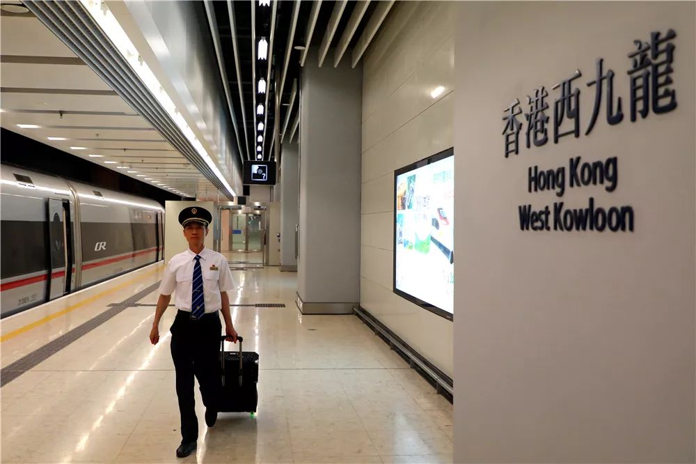 在广深港高铁香港段开通运营前夕,周树强驾驶动车组在香港西九龙站与福田站、深圳北站之间来回试运行,香港铁路司机在一旁学习。驾驶完毕后,周树强经常与港方司机交流操纵体验,传授技能技艺和经验,帮助他们以安全、平稳、舒适的驾驶操控服务,助力香港迈入高铁时代。